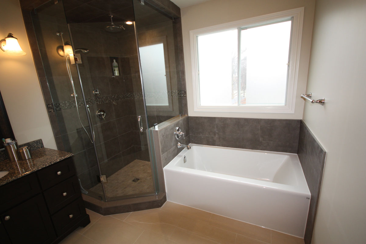 We do jobs in various sizes so we don’t shy away from smaller ones like this ensuite bathroom located in a home on Snow Goose Lane in Mississauga.